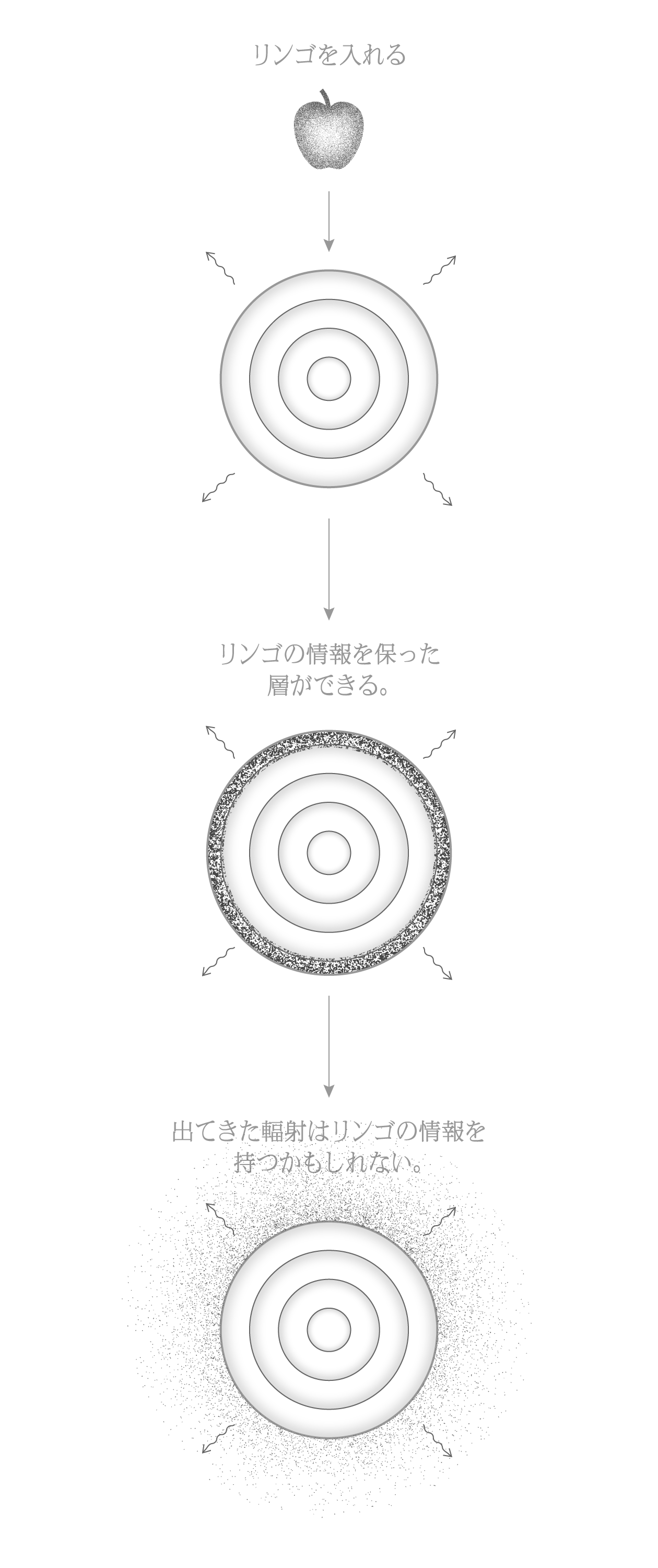 この量子ブラックホールは内部に構造があり、そこに情報が蓄えられています。例えば、リンゴを投げ入れれば、リンゴから成る新しい層が表面に形成され、リンゴの情報はそこに保存されます。今後の更なる研究によって、ブラックホールの蒸発と共にリンゴの情報がどのように外に出てくるのかがわかれば、遠い未来では量子ブラックホールを大容量の情報ストレージとして「原理的に」利用できるかもしれません。このように、量子ブラックホールが遠い未来に情報ストレージになり得るという空想が、今回のプロトタイプのアイデアのもとになっています。